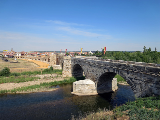 The 13th-century stone bridge of Hospital de Órbigo is 200 meters long and boasts twenty arches, which now mostly rest on bare ground now that a dam blocks much of the Orbigo River, but the bridge survives because of the Camino-worthy legend of Don Suero de Quiñones.