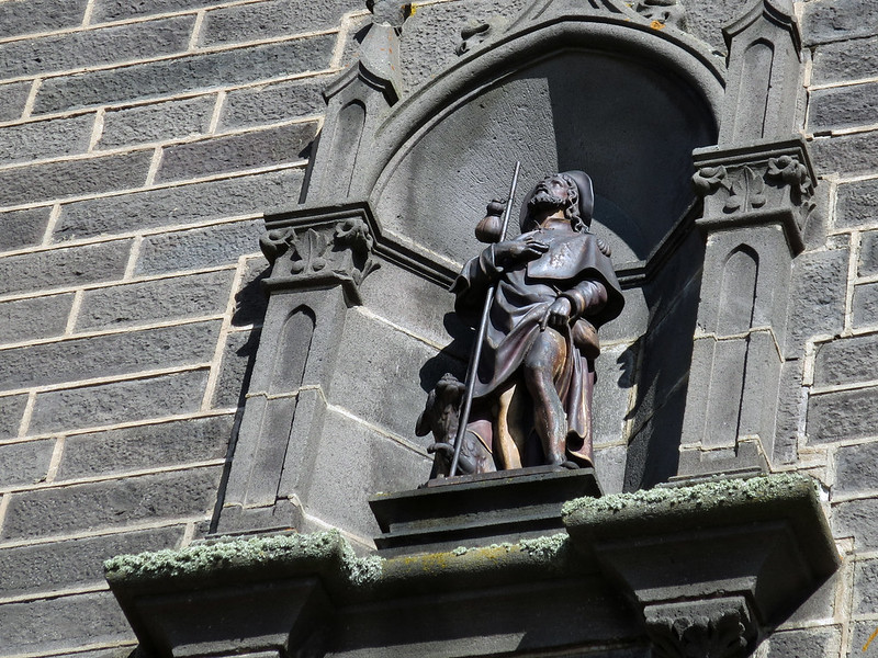 Previous Image 19564001422_d6b232a30a_c The first time we noticed San Roche, a key saint for pilgrims, and always showing a little leg